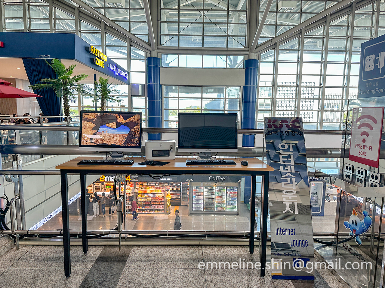 약국은 2층에 한곳이 있어 급한 비상약이나 필요한 기본적인 의약품을 구매할 수 있죠. 그리고 인터넷 라운지가 있어 비행기 바우처, 호텔 예약바우처 등 프린트가 가능했습니다. 그리고 무료 스마트폰 충전기도 있었는데 지금 말씀드린 편의시설은 모두 2층에 위치하고 있답니다.
